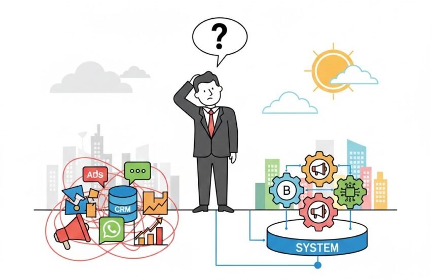 The real problem is this – businesses keep adding tools, but never building a system. Marketing happens in isolation. Websites are created without thinking about scale. Technology decisions are made only when something breaks.